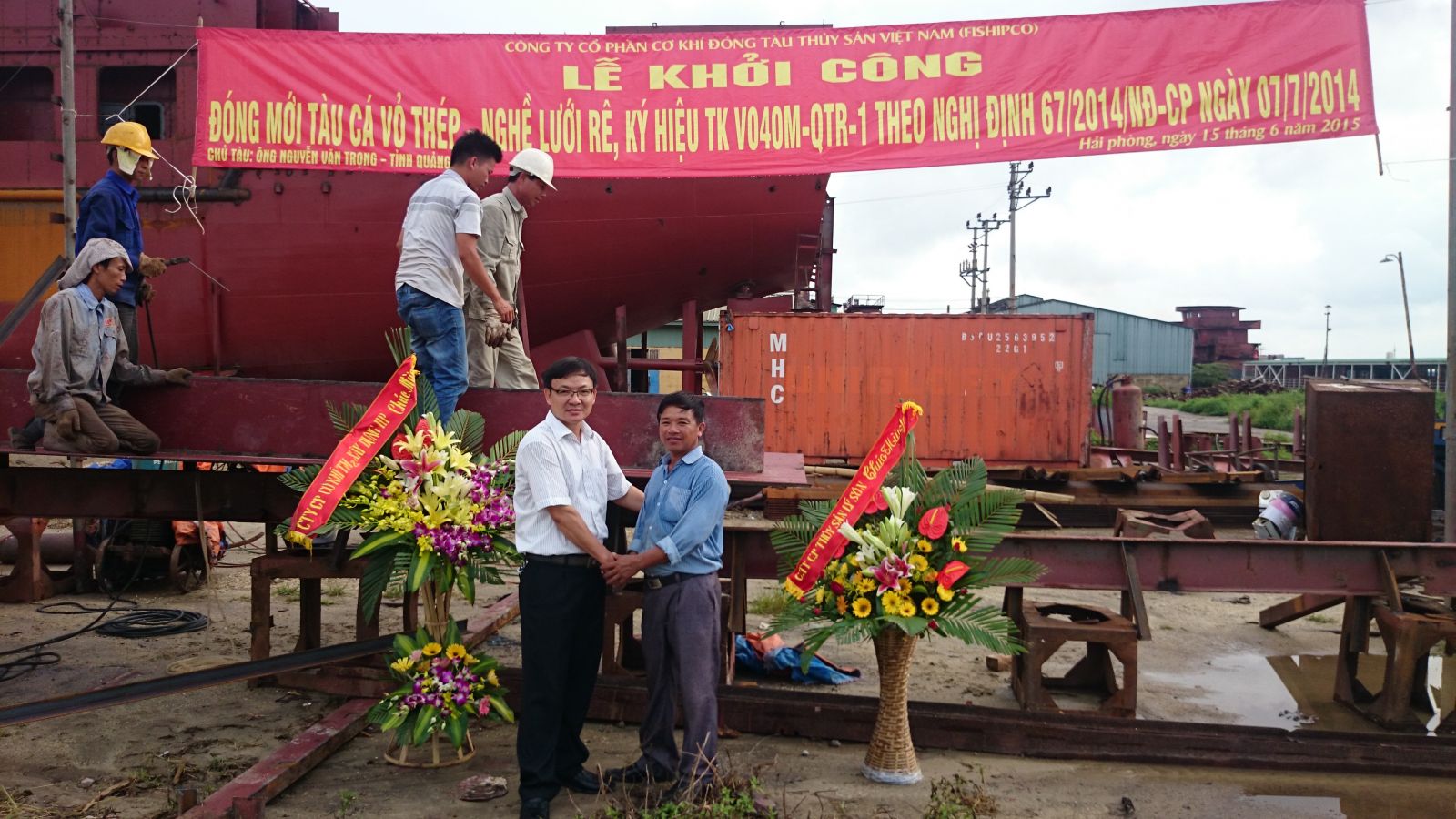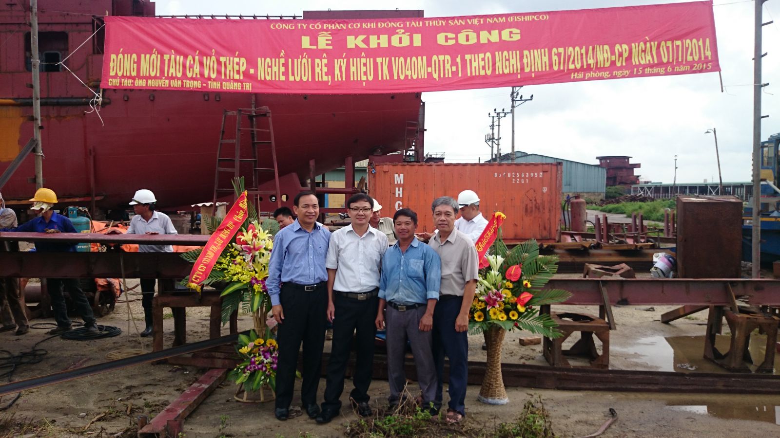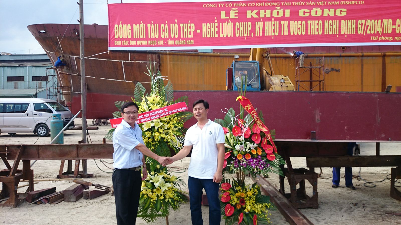 Sáng ngày 12 tháng 6 năm 2015 Công ty Cổ phần Cơ khí đóng tàu Thủy sản Việt Nam và Chủ tàu Ông Huỳnh Ngọc Huệ - Tỉnh Quảng Nam đã tổ chức lễ khởi công đóng mới tàu đánh cá vỏ thép nghề lưới chụp ( Ký hiệu V050).
