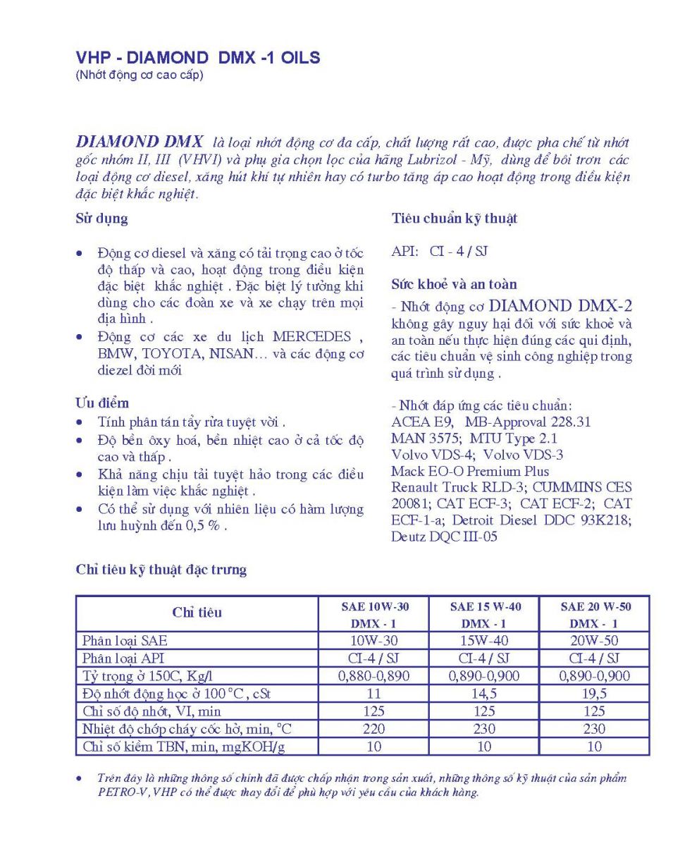 Sản phẩm, hàng hóa Dầu mỡ nhớt VHP - MP.... Dầu động cơ cao cấp VHP - DIAMOND DMX -1 oils